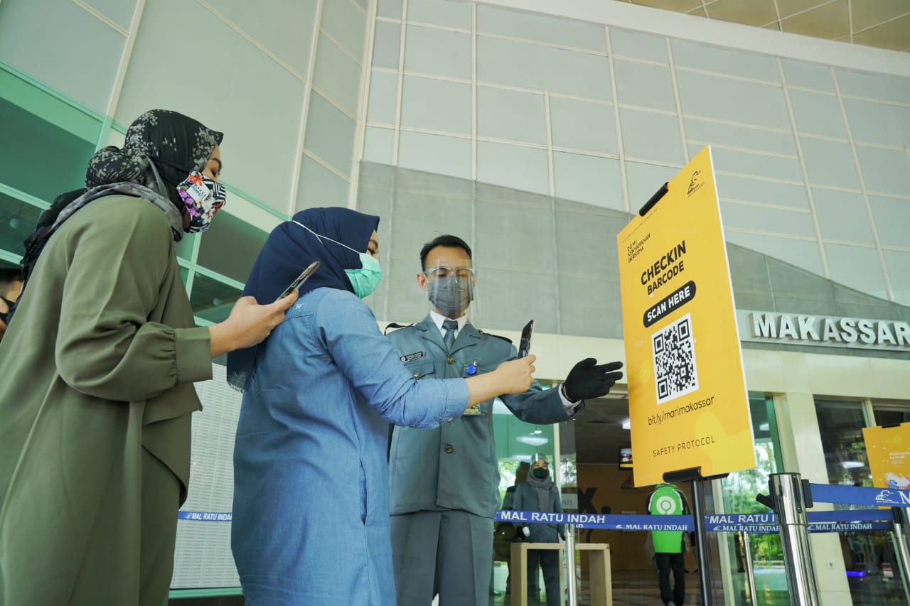 Petugas keamanan yang berjaga pada setiap akses pintu mal akan mengarahkan pengunjung untuk melakukan scan barcode sebelum memasuki area mal. Dimana QR code telah terpasang pada setiap akses pintu. Pengunjung melakukan pengisian formulir daring check-in dan setelah itu memperlihatkan kepada petugas. Selanjutnya dilakukan pengecekan suhu tubuh oleh petugas, kemudian pengunjung menambahkan informasi tambahan berupa data suhu tubuh ke dalam formulir daring check-in tersebut. Hal serupa kembali dilakukan pengunjung mal ketika akan meninggalkan area atau check-out, namun dengan format pengisian yang lebih singkat. Jika pengunjung datang dengan formasi keluarga yang lengkap, cukup diisi oleh satu orang anggota keluarga saja.