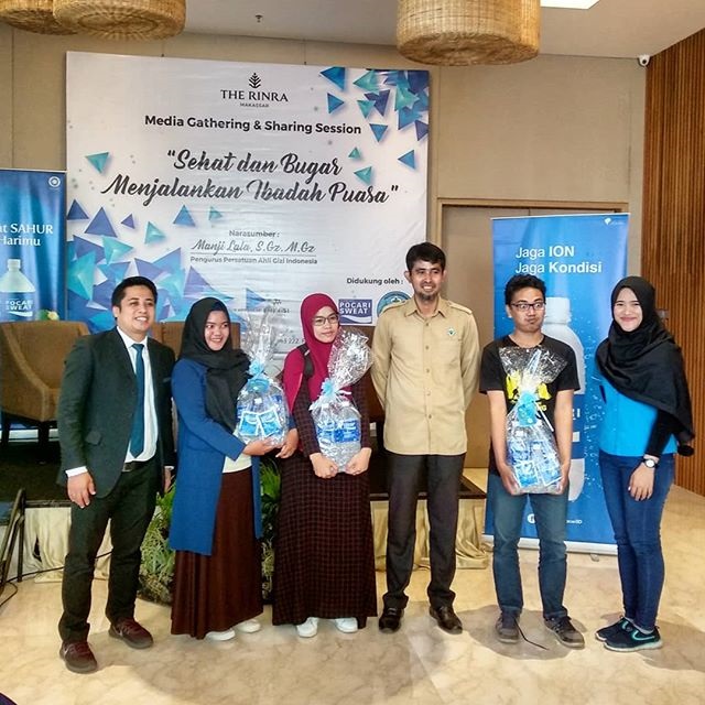 Hari ini, kami bekerjasama dengan “The Rinra Hotel” , komunitas “HIJABERS MAKASSAR” dan “KOMUNITAS JURNALIS BERHIJAB” yang menghadirkan Manji Lala,S.Gz.M.Gizi dari POLTEKKES Gizi Makassar sebagai narasumber. Para peserta sangat antusias untuk mengetahui tips “bagaimana tetap aktif selama bulan ramadhan” sekaligus mendapatkan informasi tentang pentingnya minuman isotonik untuk dikonsumsi saat sahur agar tubuh tidak cepat dehidrasi saat menjalankan ibadah puasa.